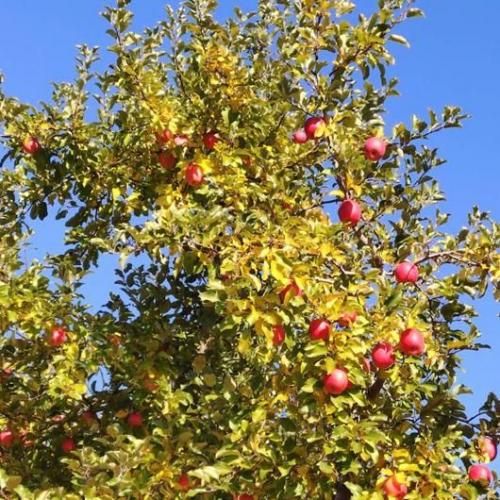当園では、より甘みが増して味がよくなるように日光をたくさん浴びて葉の栄養をりんごに届けるため、無袋栽培・葉とらずで栽培しています。そのため、果皮の赤色がまだらなものや傷があるものなど見た目は悪いですが、味には自信があります。